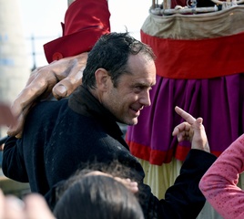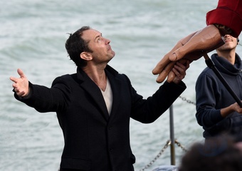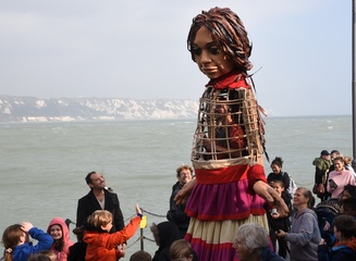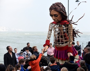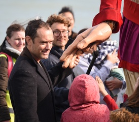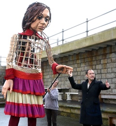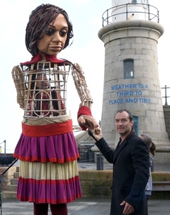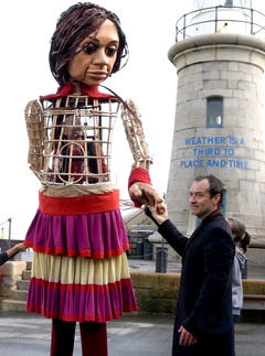Jude Law z „Little Amal”, 3,5-metrową marionetka mlodej syryjskiej uchodzczyni