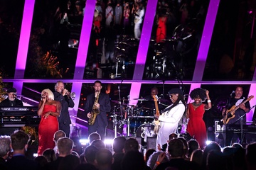 Roman Kemp, Roger Taylor, John Taylor, Simon Le Bon and Nick Rhodes of Duran Duran