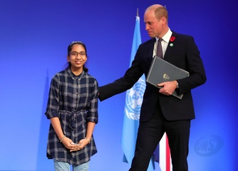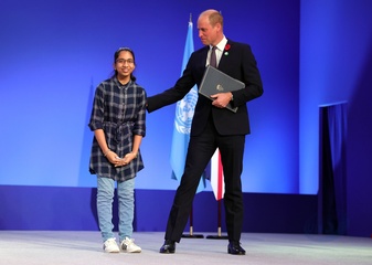 Ksiaze William z 14letnia Vinisha Umashankar, finalistka EarthShot Prize na Cop26