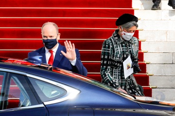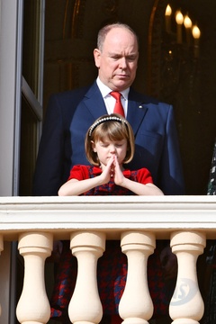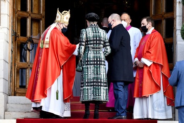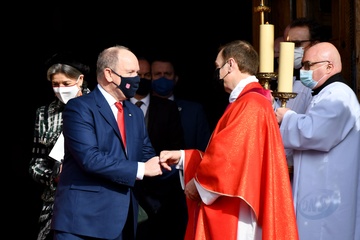 Ksiaze Albert z dziecmi i z siostra podczas swieta Sainte Devote