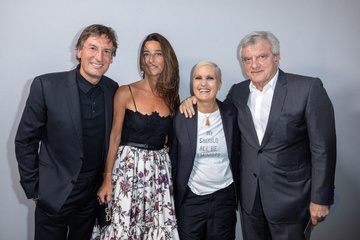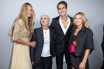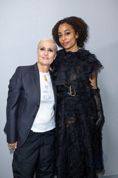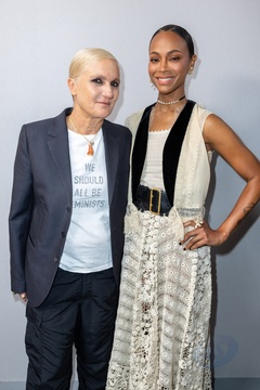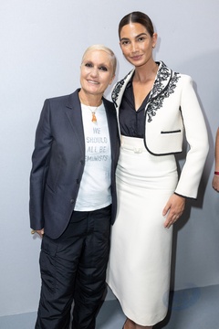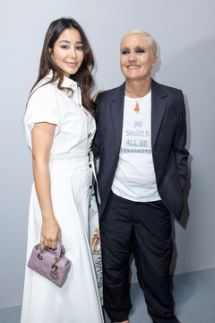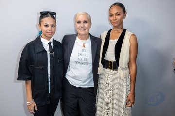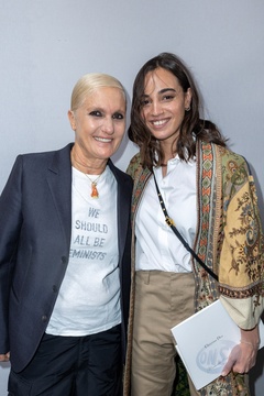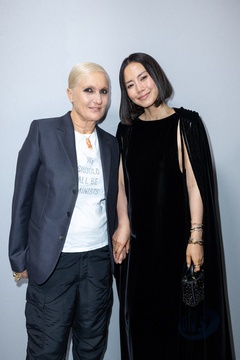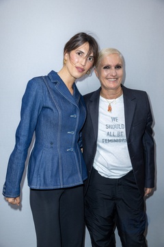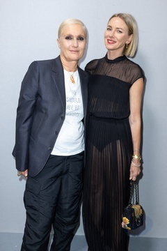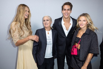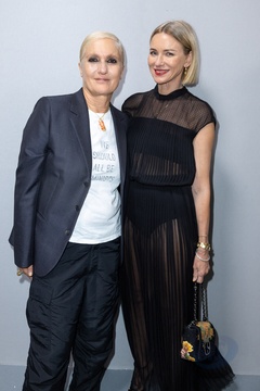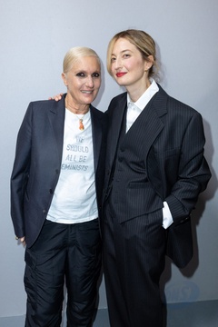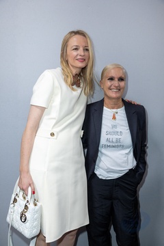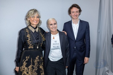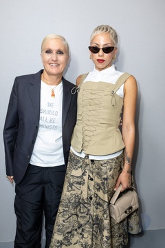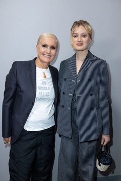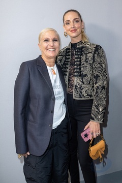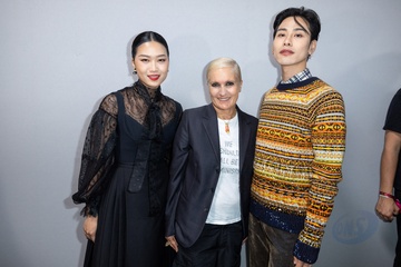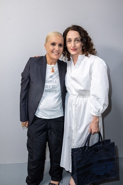 Maria Grazia Chiuri pozuje z goscmi na pokazie DIOR