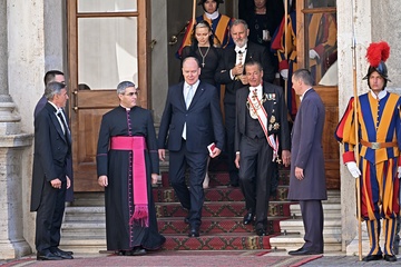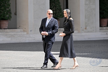 Ksiezna Charlene i ksiaze Albert w Wartykanie