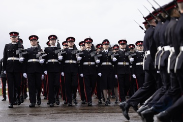 Karol III przeprowadza inspekcję parady władcy w Royal Military Academy Sandhurst_