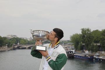 Novak Djokovic - sesja z pucharem przy Wiezy Eiffla