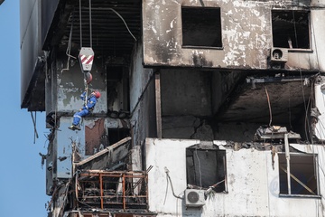 Kijow zniszczona przez Rosjan dzielnica Dniepropirtrowska_