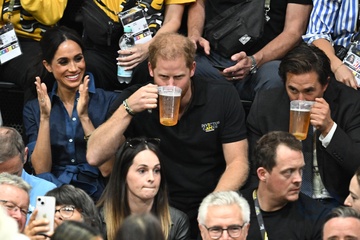 Harry Meghan Markle pije piwo na meczu siatkowki_