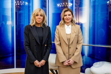 Le couple présidentiel français reçoit la Première Dame ukrainienne Olena Zelenska au Palais présidentiel de l'Elysée à Paris