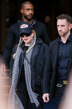 Madonna otoczona przez ochroniarzy przed hotelem Ritz w Paryzu