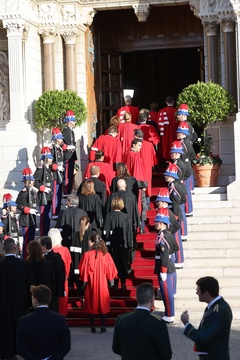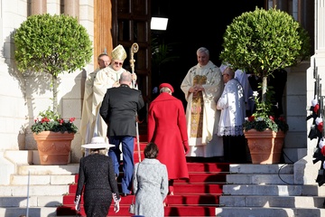 La famille princière de Monaco à son arrivée en la cathédrale Notre-Dame Immaculée pour la messe solennelle d'action de grâce et un Te Deum, à l'occasion de la Fête Nationale de Monaco