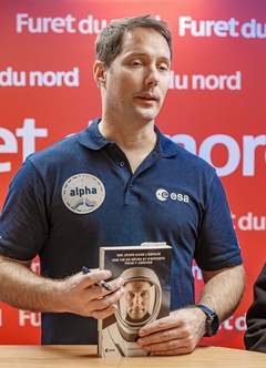 Thomas Pesque astronauta podpisuje swoja ksiazke Moje życie bez grawitacji