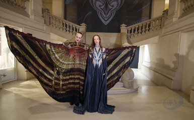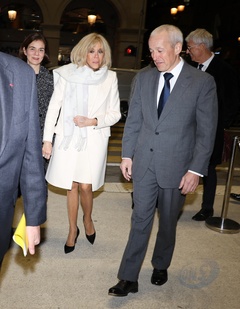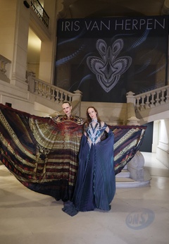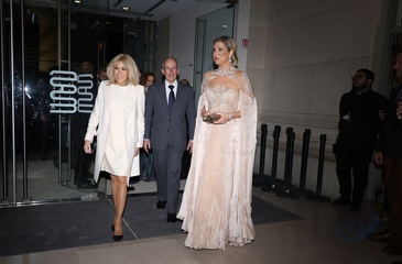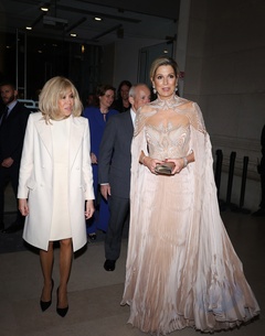 La reine Maxima des Pays-Bas et la Première Dame française Brigitte Macron lors de l'ouverture de l'exposition "Sculpter les sens" d'Iris van Herpen au Musée des Arts Décoratifs de Paris