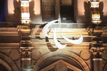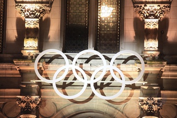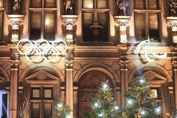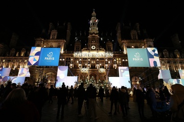 paryski ratusz udekorowany w barwach igrzysk olimpijskich Paris 2024