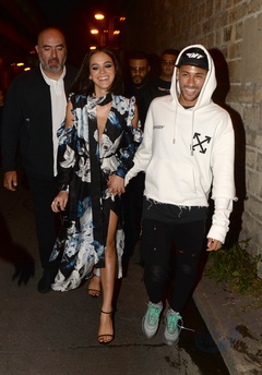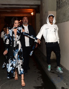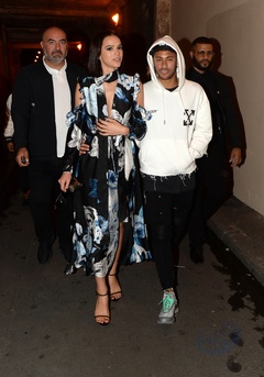 Neymar Jr. et sa compagne Bruna Marquezine à la sortie du défilé Off White "Collection Prêt-à-Porter Printemps/Eté 2019" lors de la Fashion Week de Paris (PFW)