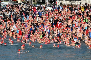 Świąteczna kąpiel w Cagnes-sur-Mer mikolaje
