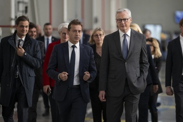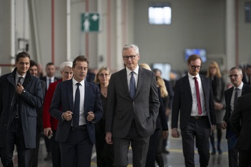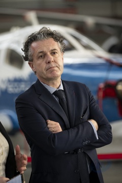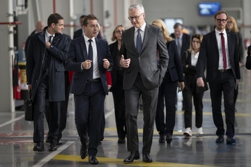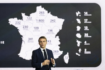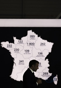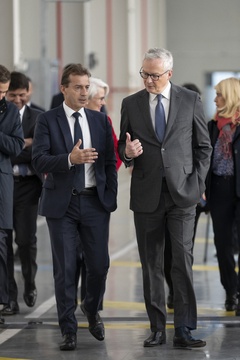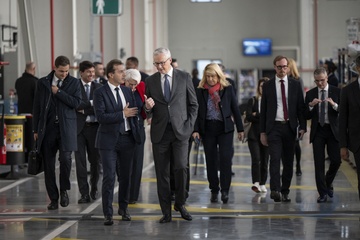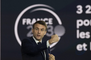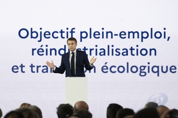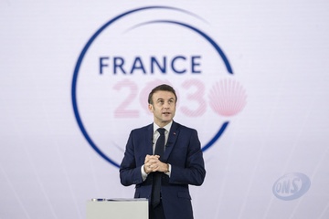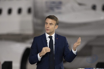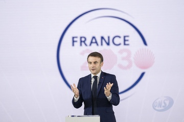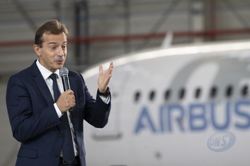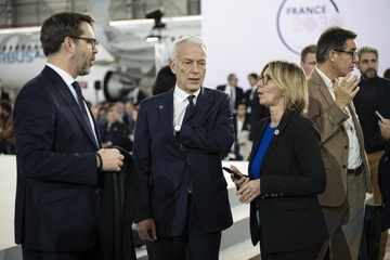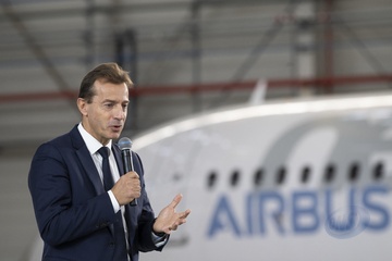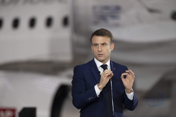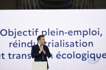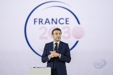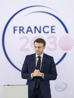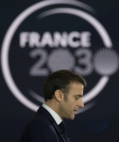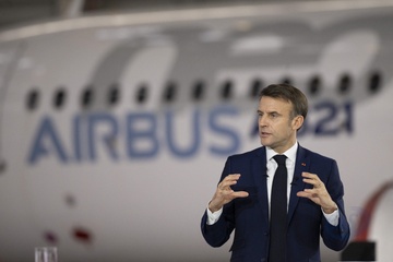 Le président Emmanuel Macron visite le site de Airbus à Toulouse à l'occasion des deux ans du plan d'investissement France 2030