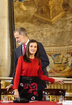 Le roi Felipe VI et la reine Letizia lors de la réunion du conseil d'administration de la Fondation Princesse de Gérone, au Palais Royal à Madrid