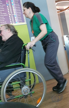 Exclusif - Prix Special - No Web - Gérard Depardieu, que tout le monde cherche, a été aperçu, transporté en chaise roulante, dans la zone VIP de l'aéroport de Lisbonne