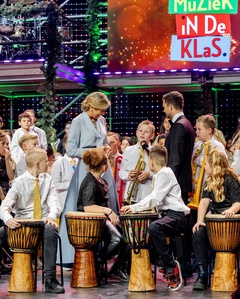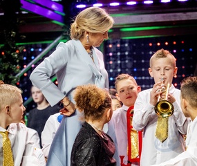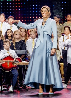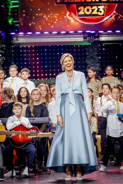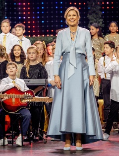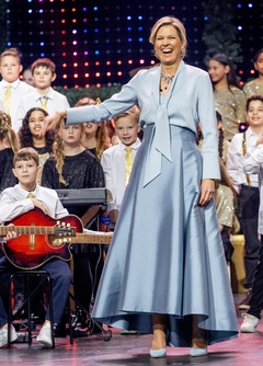 Królowa Holandii Maxima podczas nagrania świątecznej gali muzycznej 2023 w Spant w Bussum