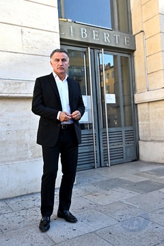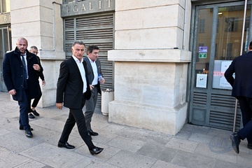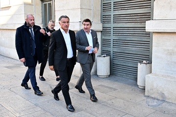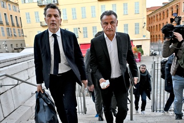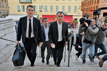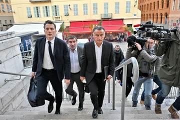 Christophe Galtier, l'ancien entraîneur de l'OGC Nice, accompagné par ses avocats, maîtres Sébastien Schapira et Olivier Martin, comparaît devant le tribunal correctionnel de Nice