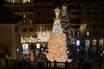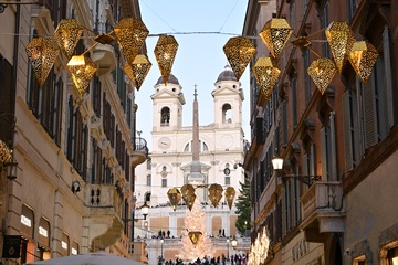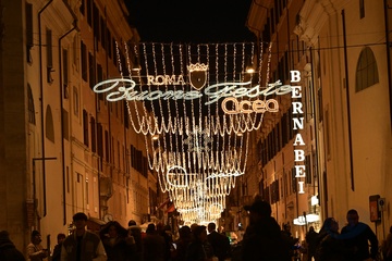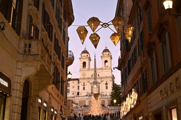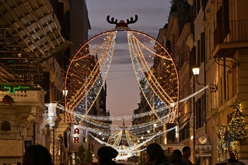 Christmas lights in the streets of the centre. Rome 15 Dec 2023