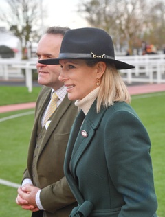 Zara Tindall na grudniowych wyścigach, tor wyścigowy Cheltenham, Gloucestershire, Wielka Brytania