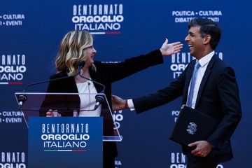 meeting with Prime Minister of the United Kingdom Rishi Sunak during Atreju 2023, Rome, Italy 16 Dec 2023