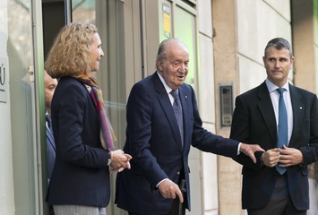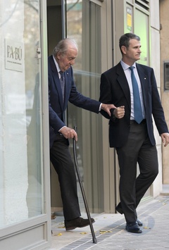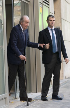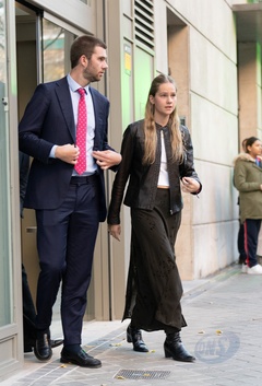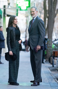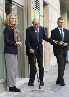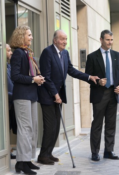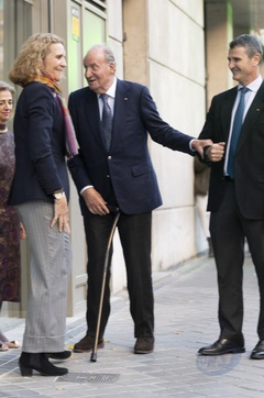 Rodzina królewska Hiszpanii opuszcza restaurację Pa-Bu w Madrycie z okazji 60. urodzin hiszpańskiej księżniczki Eleny