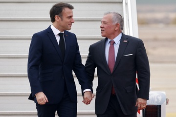 Król Jordanii Abdullah II Emmanuel Macron