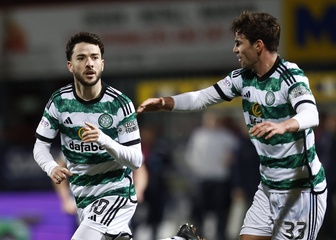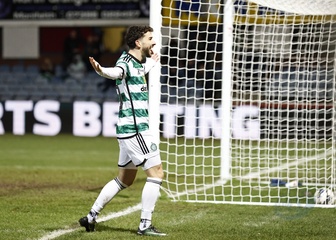 Dundee kontra Celtic w meczu Premiership Mikey Johnston z Celticu (po lewej) świętuje zdobycie drugiego gola dla swojej drużyny z Mattem OŐR