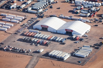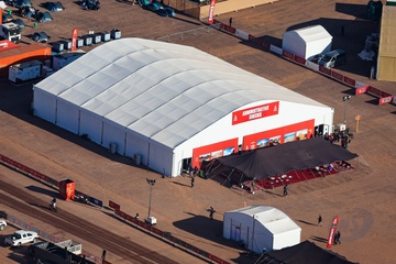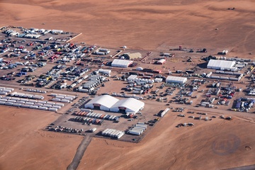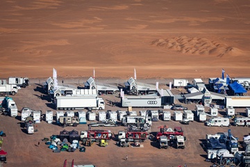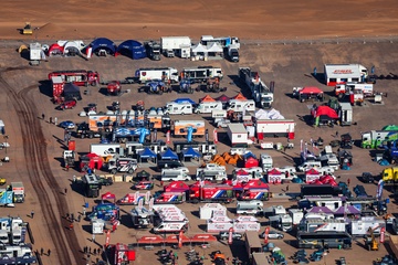 Widok z lotu ptaka na biwak Dakar 2024 podczas kontroli administracyjno-technicznych w Al-Ula w Arabii Saudyjskiej