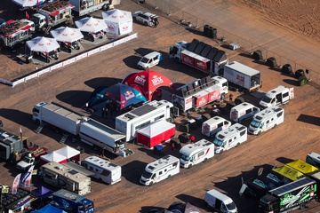 Vue aérienne du bivouac du Dakar 2024 lors des Vérifications administratives et techniques à Al-Ula en Arabie Saoudite