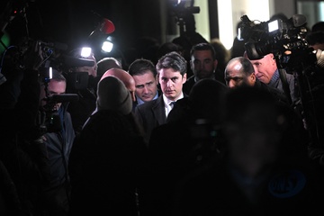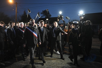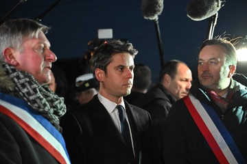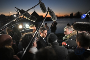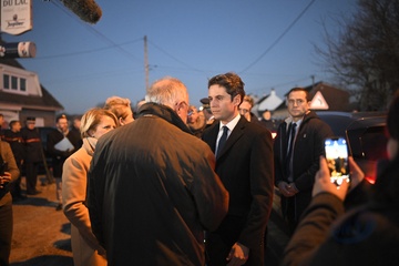 Le nouveau Premier ministre Gabriel Attal lors de son première déplacement dans le village de Clairmarais