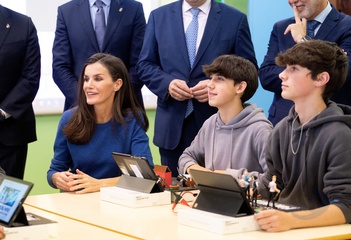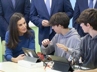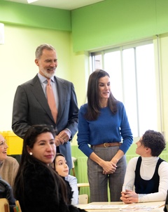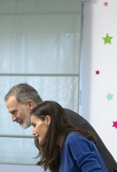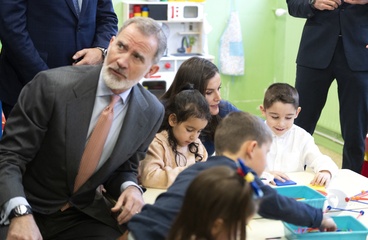 Le roi Felipe VI et la reine Letizia d'Espagne en visite dans l'école primaire "Gumersindo Azcarate" à Léon en Espagne
