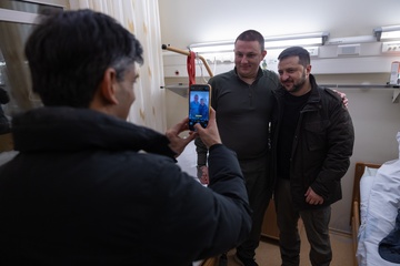 Premier Wielkiej Brytanii Rishi Sunak z wizytą w szpitalu wojskowym na Ukrainie