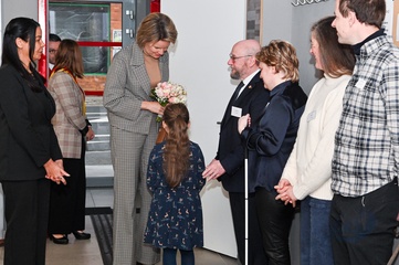 La reine Mathilde de Belgique visite Handicap Visual Formation à Charleroi