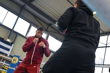 Bokser Ahmed El Mousaoui trenuje na siłowni IBC Boxing w Champs sur Marne