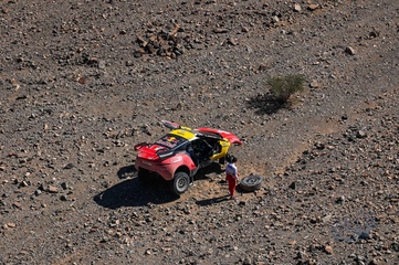 Crevaison pour Sébastien Loeb lors de la l'étape 11 du Dakar 2024 en Arabie Saoudite