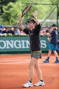 Steffi Graf et son mari André Agassi participent à un match exhibition dans le cadre de l'opération "Roland-Garros dans la Ville" lors du tournoi des "Longines Future Tennis Aces" à Paris