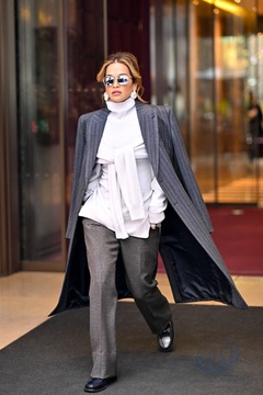 Rita Ora opuszcza hotel Costes, aby udać się na pokaz Diora podczas Tygodnia Mody w Paryżu