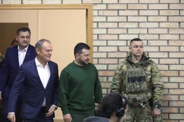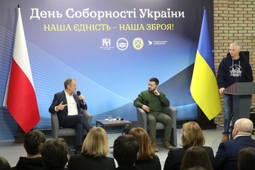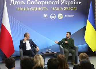Volodymyr Zelenskyy and Donald Tusk meet with students in Kyiv