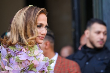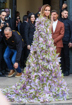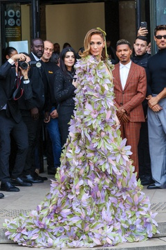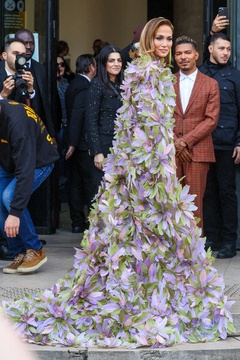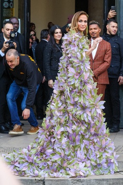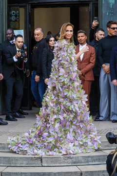 Jennifer Lopez (JLo) pojawia się na pokazie Elie Saab Haute Couture wiosna/lato 2024 w ramach Tygodnia Mody w Paryżu