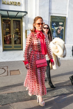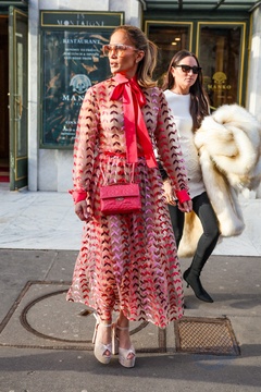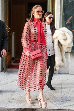 Jennifer Lopez (JLo) opuszcza restaurację Gigi, aby udać się na pokaz mody Valentino na marginesie Tygodnia Mody w Paryżu