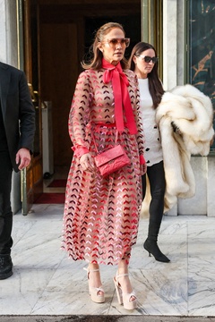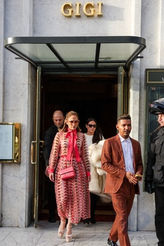 Jennifer Lopez (JLo) à la sortie du restaurant Gigi pour se rendre au défilé Valentino en marge de la Fashion Week de Paris (PFW)