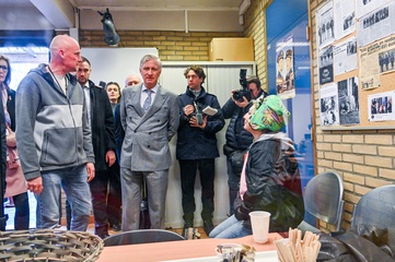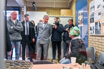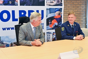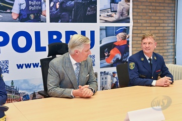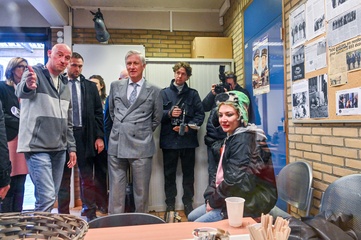 Le roi Philippe de Belgique en visite à une équipe de la zone de police de Bruxelles Capitale-Ixelles, Herscham Team, qui vient en aide principalement aux sans-abris