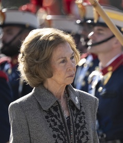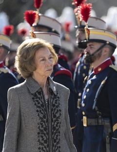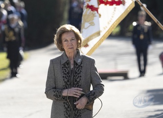 La reine Sofia lors de l'acte de serment devant le drapeau à la caserne "El Rey" de la Garde royale à Madrid
