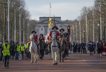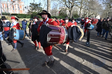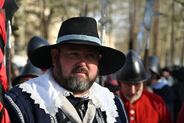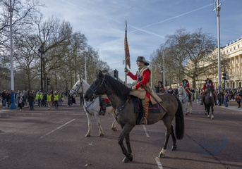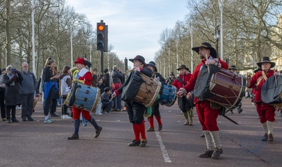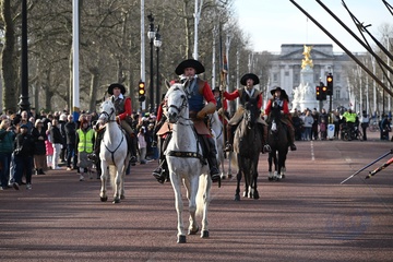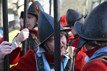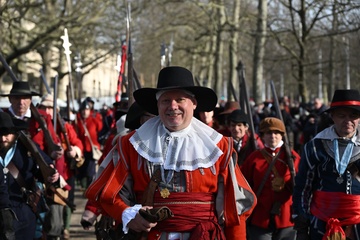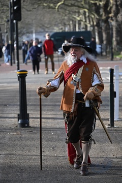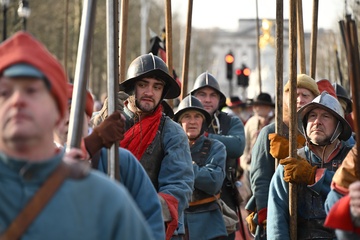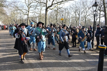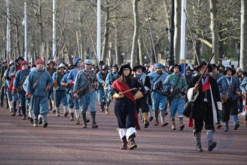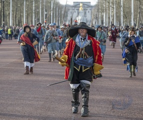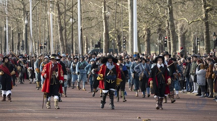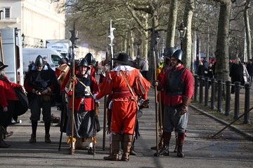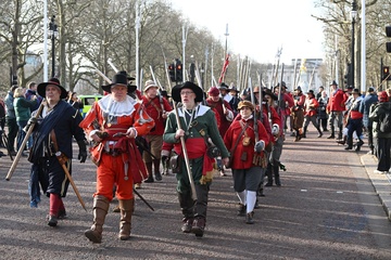 English Civil War reenactors march along The Mall to Horseguards in London, UK, on 28th January, 2024