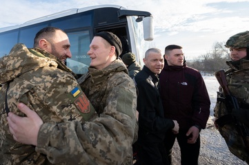 Ukraińscy żołnierze wracają do domu po wymianie jeńców wojennych między Rosją a Ukrainą
