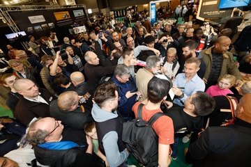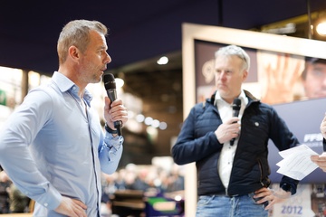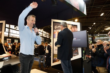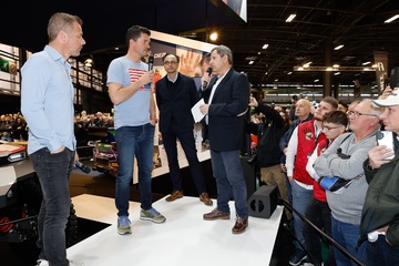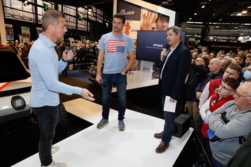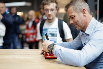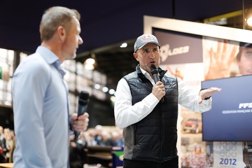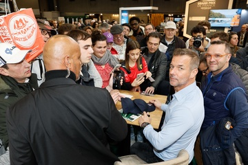 Sébastien Loeb fête ses 50 ans lors du salon Rétromobile 2024 au Paris Expo Porte de Versailles à Paris