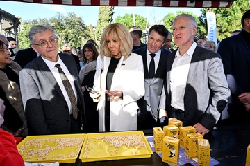 Brigitte Macron uczestniczy w zbiórce pieniedzy na poprawe zdrowia hospitalizowanych dzieci.