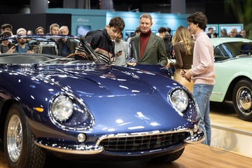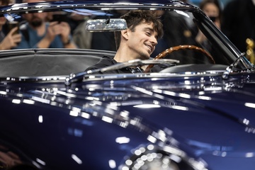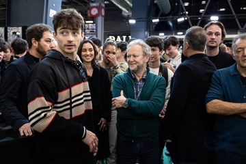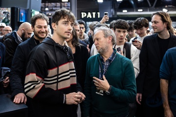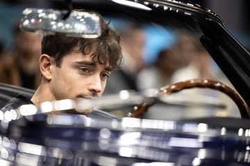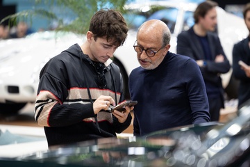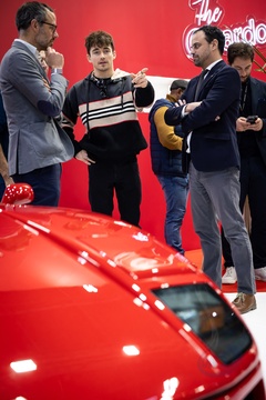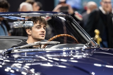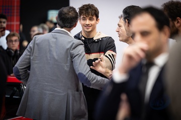 Le pilote Charles Leclerc et sa compagne Alexandra Saint Mleux font un passage au salon Rétromobile 2024 à Paris